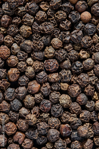Black pepper, vertical frame, flat lay or mockup. Aromatic spices, screen wallpaper ideas