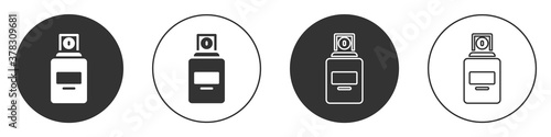 Black Perfume icon isolated on white background. Circle button. Vector.