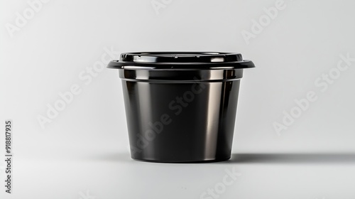 Black plastic disposable sauce cup isolated on white : Generative AI