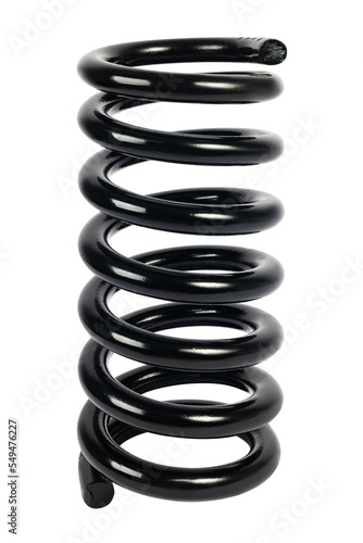 Black shock absorber spring for car on a white background.