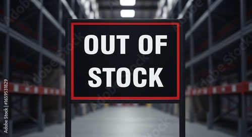 Black sign with white text in warehouse out of stock