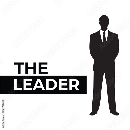 Black silhouette businessman frontview with white background, Formal outfit silhouette