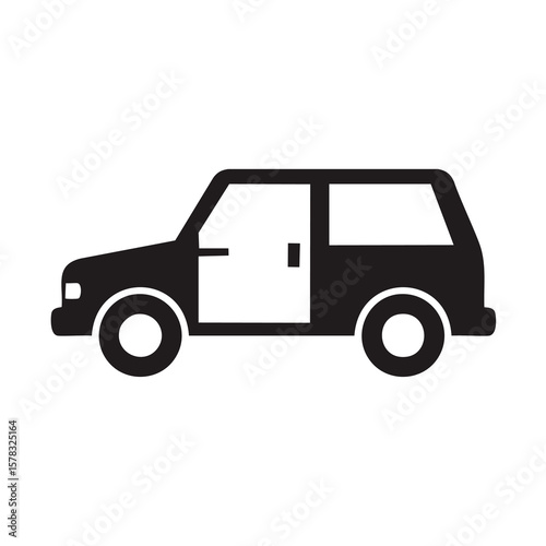 car, vehicle, automobile, transport, transportation, black, silhouette, icon, graphic, design, simple, clean, white background, open door, wheel, window, half face