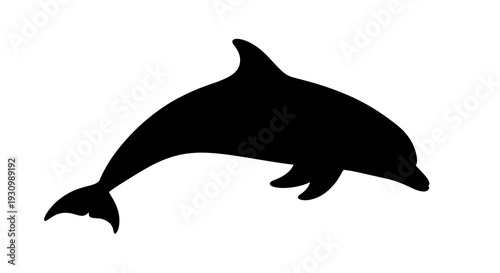 Black silhouette of a dolphin jumping.