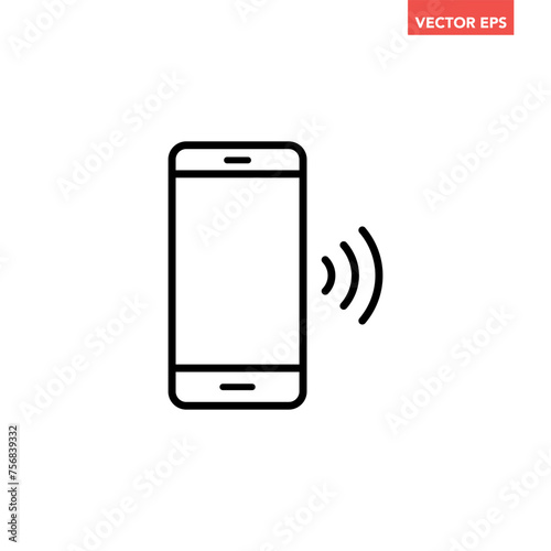 Black single phone signal line icon , simple digital nfc e-payment connect by phone outline flat design pictogram vector for app ads web button ui ux interface elements isolated on white background