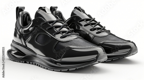 Black sneakers isolated on white background, sport shoe concept