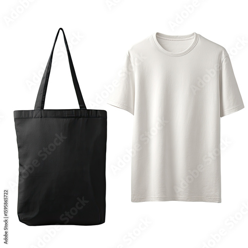 tote, bag, black, white, t-shirt, clothing, apparel, casual attire, simple, blank, fashion, style, unisex, cotton, fabric, textile, design, print, graphic, product, image, photo, studio, accessory, environmentally friendly, sustainable, modern, minimalist, wearable, lightweight, comfortable, hard-wearing, practical, basic, essential, everyday, trendy, top, bottom, summer, fall, spring