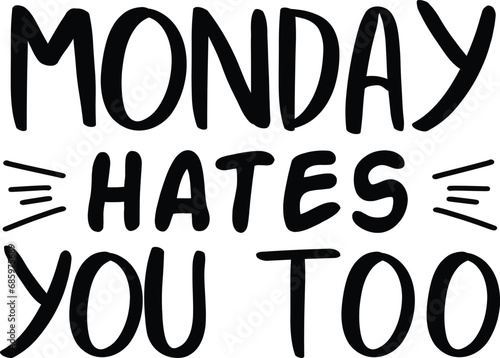 Black Typography on White Background Carrying Slogan Monday Hates You Too.