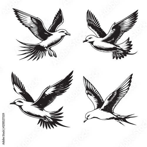 black Vector Silhouette of a Flying Long-tailed Skua on White Background"