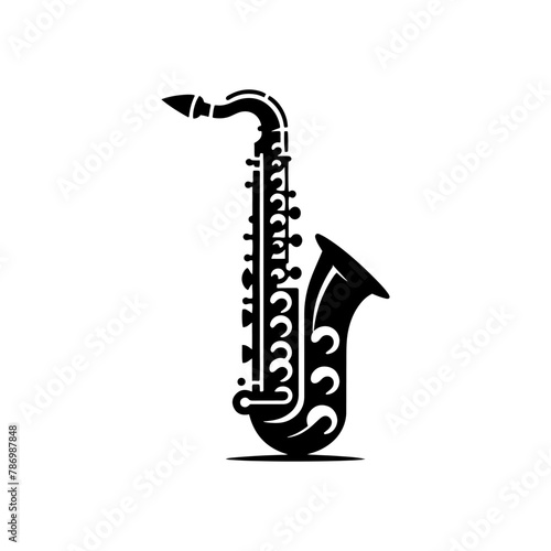 Black Vector Silhouette of a Saxophone, Symbol of Soulful Jazz and Rhythmic Blues- Saxophone Illustration- Saxophone vector stock