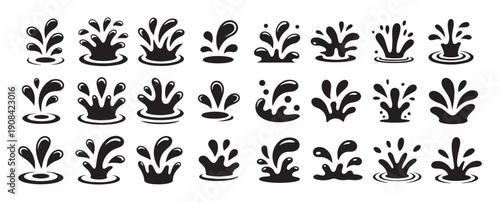 Black Water Splash and Wave Icon Set, Liquid Drop Silhouette Collection, vector illustration eps 10