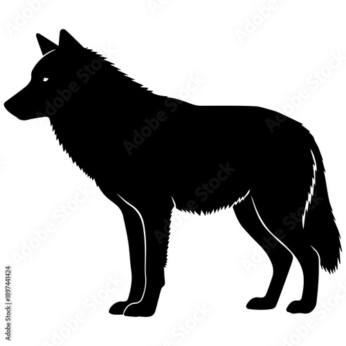Black Wolf Silhouette Vector, Standing Side View, Majestic Wild Animal Logo Concept, Clean Minimalist Design