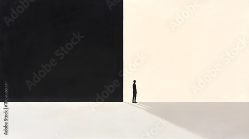 Black-and-White Vast Land with a Single Human Figure – A Dramatic Scene Highlighting Solitude and the Expansiveness of Nature