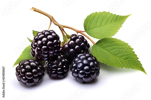 blackberry with leaf isolated on a white background. With copy space for your text. Flat lay