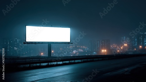 blank, billboard, night, urban, advertising, marketing, city, advertisement, signage, campaign, street, road, dark, light, skyline, city landscape, background, template, space, empty, board, highway, roadside, display, panel, construction, structure, commercial, promotion, business, media, horizontal, large, illuminated, glow, exterior, perspective