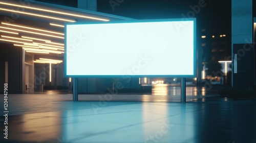 Blank billboard, city night, advertising mockup, glowing