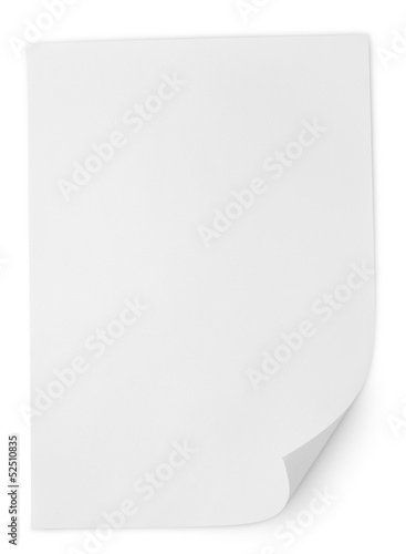 Blank sheet of paper isolated on white with clipping path