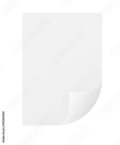 Blank white paper sheet with curled corner mockup isolated on white background. Realistic 3D paper curl template for flyer, poster, letterhead, and minimalist stationery branding identity design