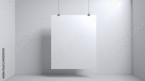 blank, white, poster, hanging, modern, design, presentation, wall, room, interior, frame, paper, template, clean, empty, background, isolated, object, picture, canvas, advertising, gallery, space, display, studio, art, vector, illustration, style, minimalism, card, decor, corporate, promotion, signage, vertical, artwork, show, texture