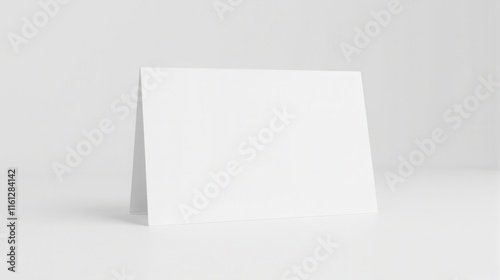 Blank white tent card standing on a minimalist surface, perfect for branding, presentations, or custom design uses