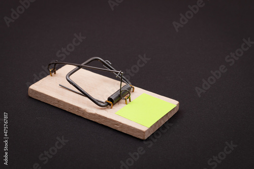 bait, black background, blank, business, catch, catcher, control, copy, danger, empty, form, greed, hazard, lure, memo, message, mousetrap, note, notepaper, notice, organise, paper, remind, risk, sheet, space, template, text, trap, wooden, yellow paper