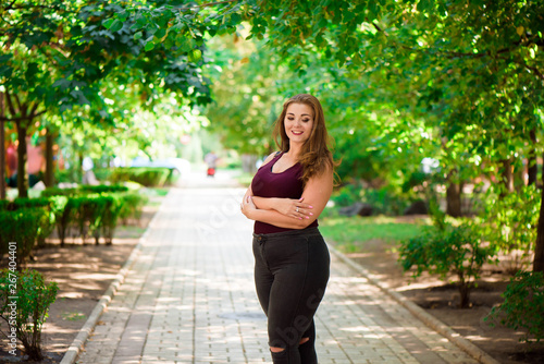 blond girl model plus in the park. XXL Girl.