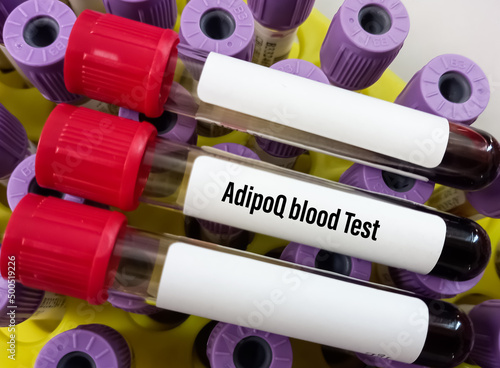 Blood sample for AdipoQ blood test. It's a protein hormone and adipokine, to diagnose metabolic disorders such as Type 2 diabetes, CBP-28 blood test, Adiponectin test