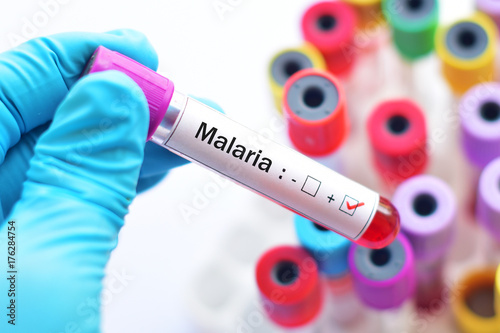 Blood sample with malaria parasite positive