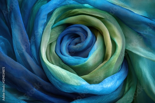 Blue and green silk fabric forming a beautiful rose shape