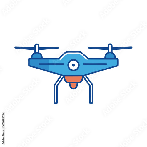 Blue and Orange Drone Illustration with Two Rotors on a White Background