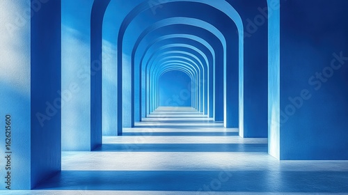 architecture, interior, arch, blue, hallway, corridor, perspective, design, modern, minimalist, surreal, abstract, repetition, geometric, passage, paseo, space, light, shadow, clean, simple, futuristic, artistic, art, background, construction, creativity, decoration, element, infinite, pattern, row, tunnel, visual, wall, way, path, connection, imagination, innovation, portal