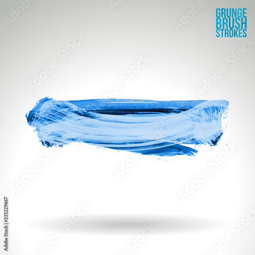 Blue brush stroke and texture. Grunge vector abstract hand - painted element. Underline and border design.