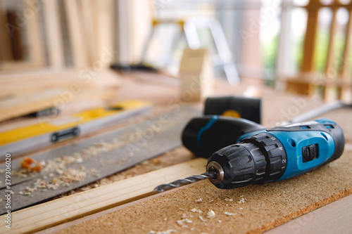 electric, drill, tool, instrument, wood, carpenter, build, object, renovation, construction, blue, copy space, craft, device, bricolage, equipment, home, interior, machine, motor, power, repair, rotary, sawdust, screwdriver, technology, woodwork, workshop