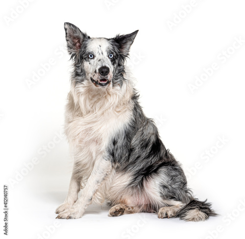 blue eyed blue merle border collie, isolated on white