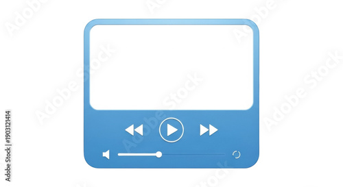Blue media player interface isolated PNG, playback controls for video and audio, modern design for apps and websites