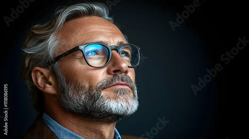 Blue Monday Reflective Pause concept as Individual taking a reflective pause at work showing signs of contemplation and sadness on Blue Monday suitable for magazine advertisement with copy space. in