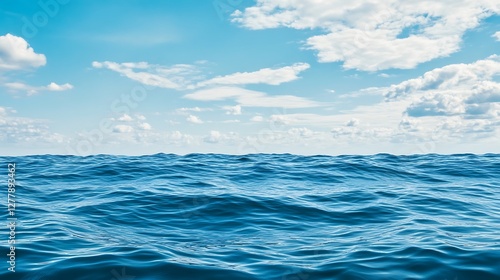 ocean, wave, water, sky, blue, cloud, horizon, sea, summer, day, sunlight, calm, peaceful, tranquil, serene, immensity, expanse, depth, texture, surface, ripple, white, fluffy, cumulus, bright, clear, open, view, natural, scene, beauty, nature, landscape, picturesque, majestic, awesome, vibrant, colours, atmosphere, weather, maritime, aquatic, marin