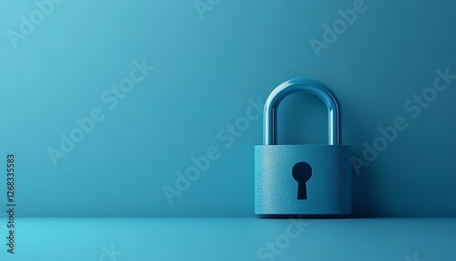 Blue padlock on simple background, symbolizing protection, security and safety, modern digital design, sleek lock, minimalist aesthetics