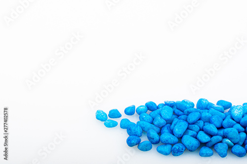 Blue pebbles stone with empty copyspace area for slogan or advertising text message, over isolated white background.