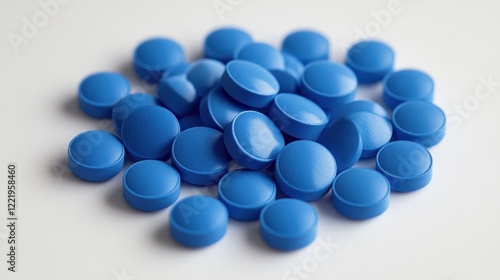 Blue pills on white background, healthcare concept