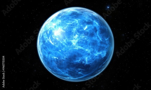 Blue planet in space with glowing atmosphere and starry background