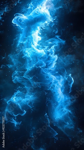 Blue Smoke and Magic on a Black Background with Starlight, Blending Business Elements. A Mysterious and Powerful Scene Merging the Ethereal with Corporate Themes. Capturing the Essence of Innovation,