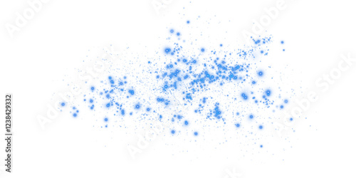 Blue sparks of dust and blue stars shine with special light. Christmas light effect. Blue sparkling particles of magic dust. PNG.