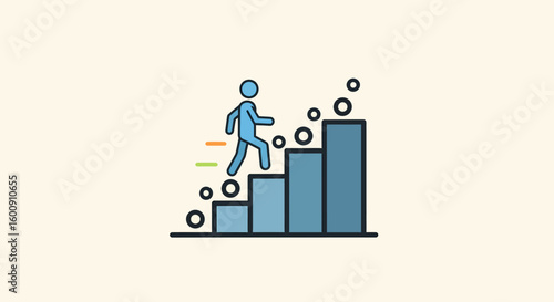 progress, growth, success, achievement, climbing, step, stair, upward, development, business, career, goal, ambition, motivation, illustration, vector, design, graphic, icon, symbol, concept, idea, journey, challenge, effort, reaching, potential, improvement, strategy, planning, future, direction, forward, moving, rising, level, stage, evolution, transformation, change, opportunity, determination, perseverance, blue, orange, green, black, white, simple