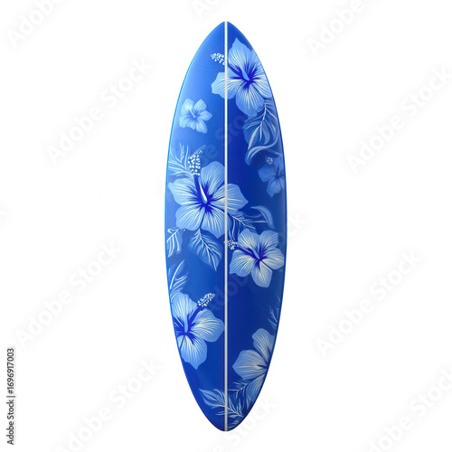 blue surfboard with a hibiscus pattern, jpeg, png, transparent