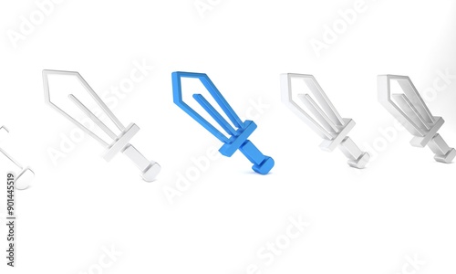 Blue Sword for game icon isolated on white background. Minimalism concept. 3D render illustration