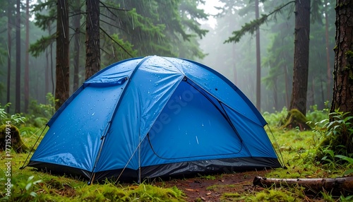 tent, forest, camping, outdoors, nature, tree, blue, green, moss, adventure, travel, wilderness, wood, misty, fog, peaceful, serene, quiet, exploration, recreation, landscape, tour tourism, vacation, shelter, environment, ecology, backpacking, campground, canopy, rain, damp, soggy, trip, trek, journey, wanderlust, secluded, isolated, tranquil, stillness, lush, wild, remote, pristine, aethereal, foggy, moisture, season, overcast