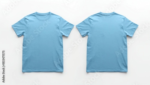 Blue t-shirt mock up, front view, isolated on white. Plain blue shirt mockup. Tshirt design template. Blank tee for print