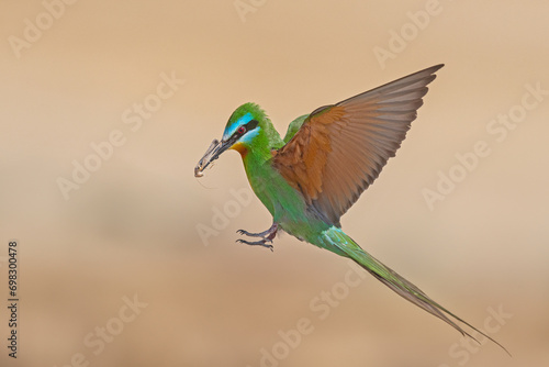 Blue-cheeked Bee-eater, Merops persicus brings food to the nest.