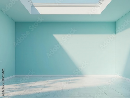 Blueprint of a living room with a central skylight and natural lighting, skylight feature, bright and airy interior